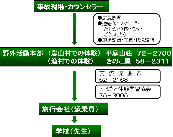 • 緊急連絡の際は、窓口組織が状況を統括し学校等へ報告